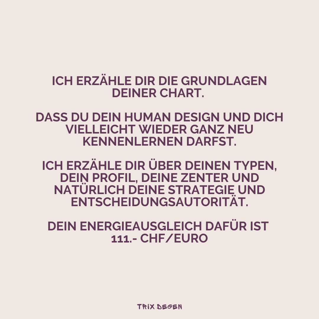 Dass du dein Human Design kennenlernen darft, vielleicht dich wieder ganz neu kennenlernen.
